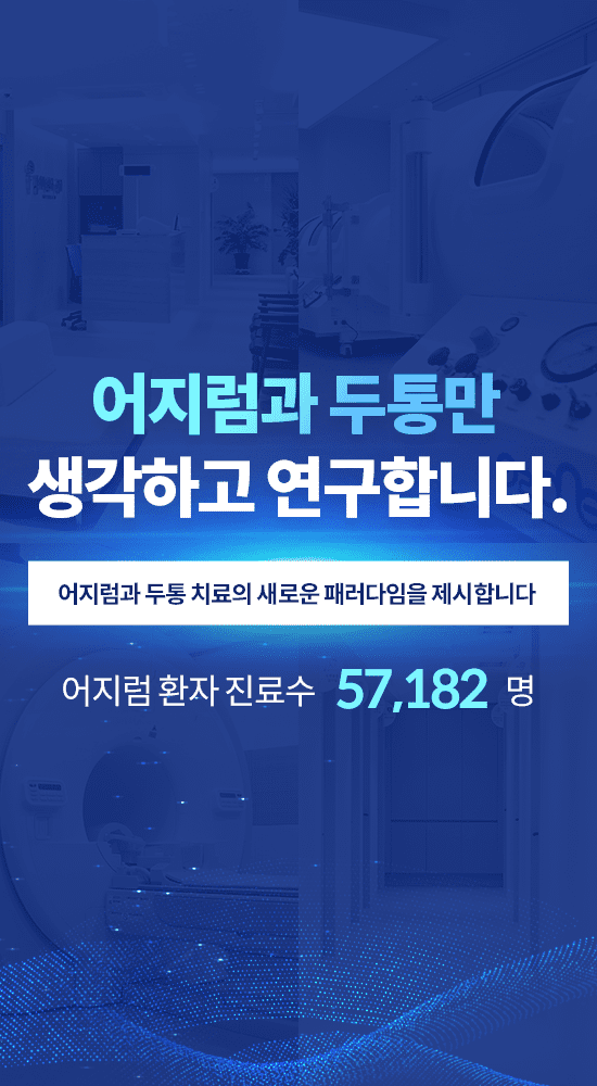자신과 주위 사물이 정지해 있음에도 불구하고 움직이는 듯한 느낌을 받는 모든 증상을 통칭하는 용어로 환자마다 제각각 모두 다르게 느끼는 증상들을 표현합니다. 어지럼증이 현대인들에게 흔하게 나타나는 증상이기는 하지만 지속적으로 나타나고 발작 주기가 짧아지는 등의 악순환이 반복되다 보면 일상생활의 불편함을 넘어서 삶의 질 저하까지 초래합니다.